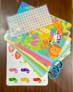 - Quiet book, colourful pictures to help kids calm down and complete the game, try this quiet book if your kids are impatient